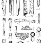 Należy nadmienić, że w tej dość jednorodnej grupie zabytków sporadycznie odnotowuje się odstępstwa od powyższej definicji. Badacze proponowali usystematyzowanie zabytków, uwzględniając te różnice w postaci różnych typów. Nie wchodząc w szczegóły typologii, wspomnę jedynie, że jak zauważył Pawlicki, to staranność wykonania mogła mieć wpływ na końcowy detal wolutowego zakończenia noża (Pawlicki 2021 s. 77). Z tego samego względu nie jestem przekonany co do potrzeby rozdzielania typów I i II według tego badacza, których podstawa leży w ilości zwojów w wolucie. Problem z przydzieleniem do konkretnego z tych dwóch typów pogłębia dodatkowo stan zachowania zabytków. Kolejną kwestią uzasadniającą potrzebę systematyzacji jest tendencja do rozszerzania tej grupy zabytków o takie, w których obecność samych wolutów może być dyskusyjna.